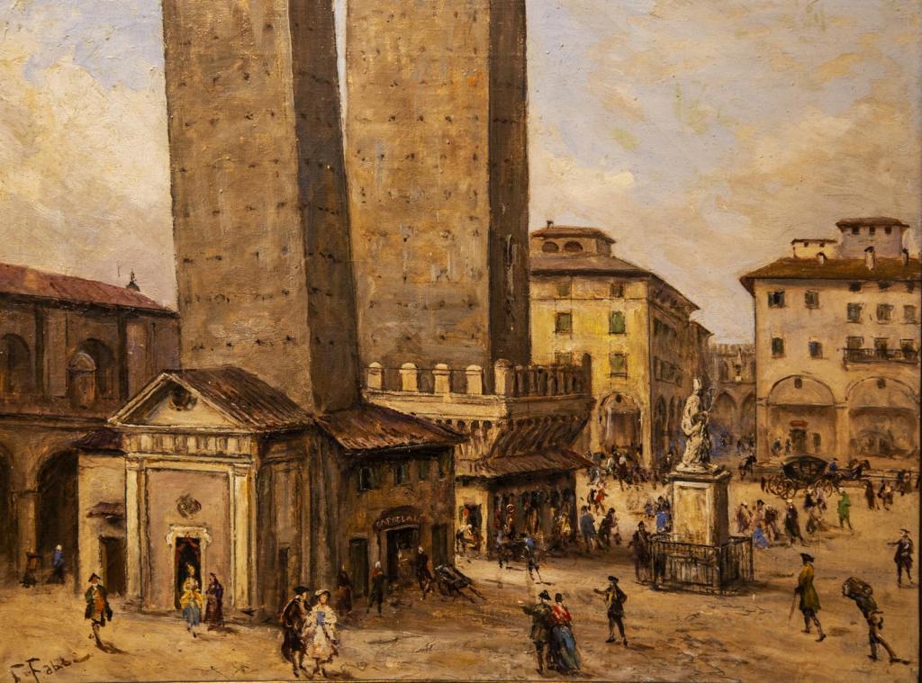 Oltre alla pittura Orientalista, Fabio Fabbi si distinse a livello internazionale per altri temi dal sapore elegante e raffinato. E’ il caso delle sue vedute cittadine, di Bologna, sua città natale, ma anche di Firenze o delle città europee che frequentò assiduamente come Parigi. Le sue carte private rivelano la grande frequenza con cui il pittore annualmente si spostava, attraverso città italiane come Livorno o Napoli, ma anche straniere.